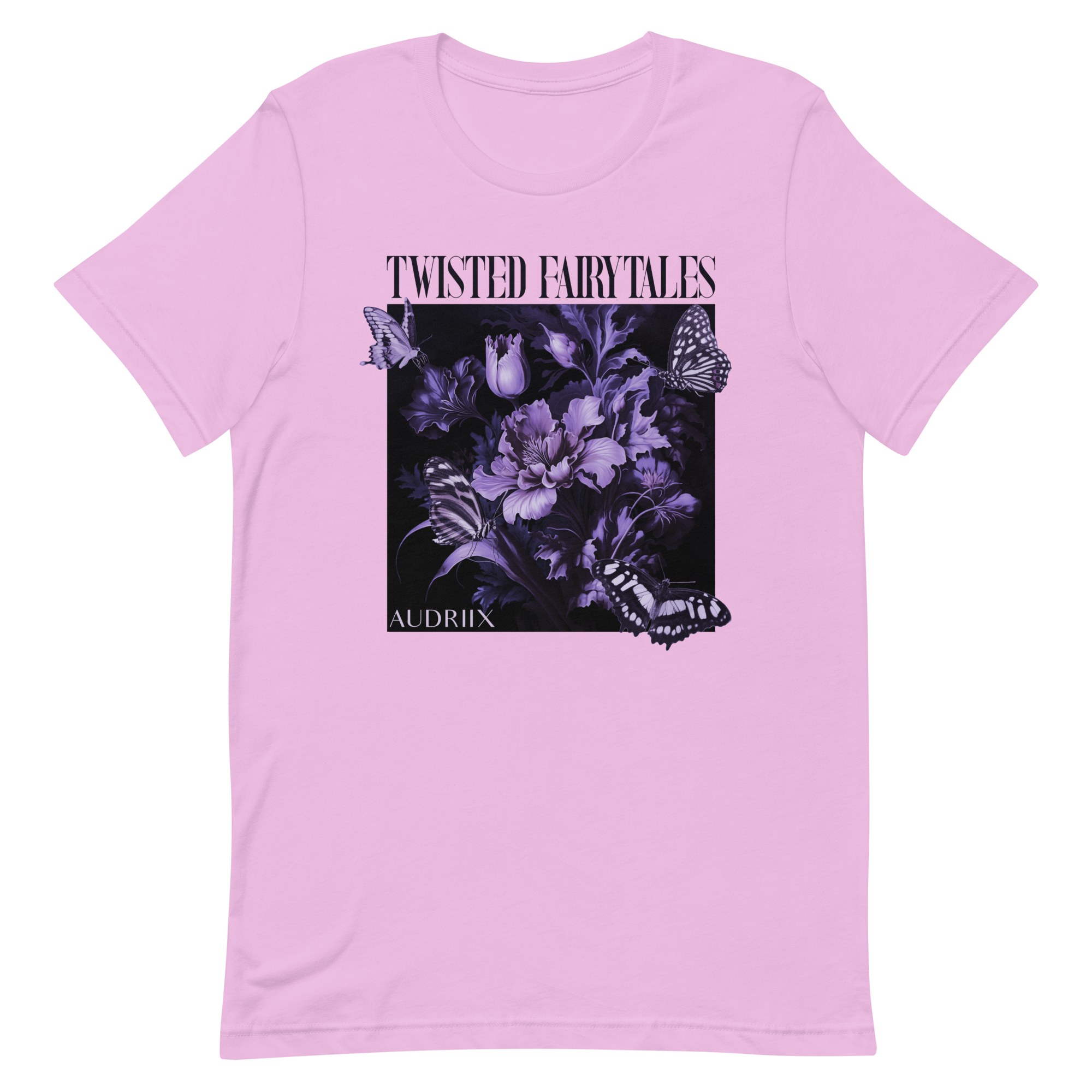 Lilac t-shirt with purple Twisted Fairytales design on the front